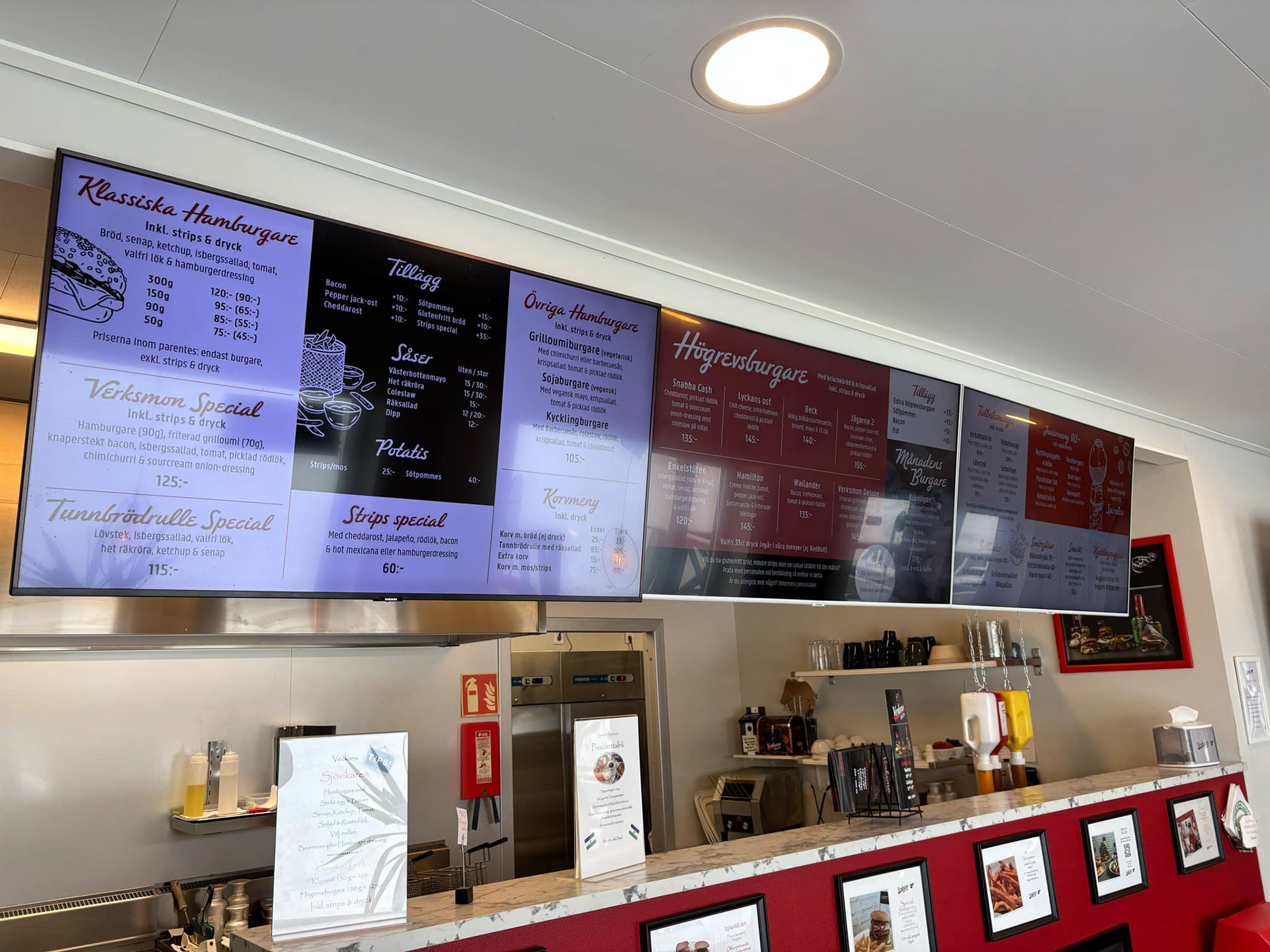 Inside the restaurant, I developed a digital menu system displayed across three overhead screens above the ordering counter. These were designed to clearly present their wide selection of burgers, meals, and sides in an appealing, easy-to-read format that enhances the in-store ordering experience.